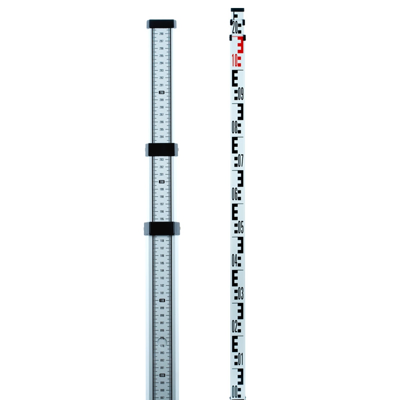 Наличие миллиметровой шкалы на обратной стороне расширяет возможности использования рейки, отсчет начинается от нижней части рейки. А с лицевой стороны нанесена стандартная красно-черная градуировка типа "Е".